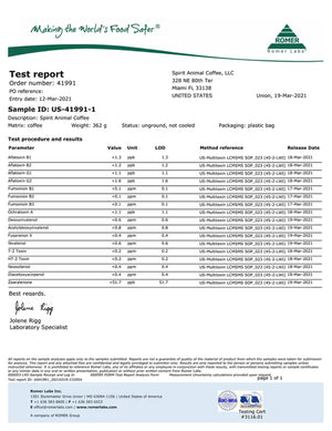 All our coffees have been tested for mycotoxins and pesticides by 3-rd party labs.