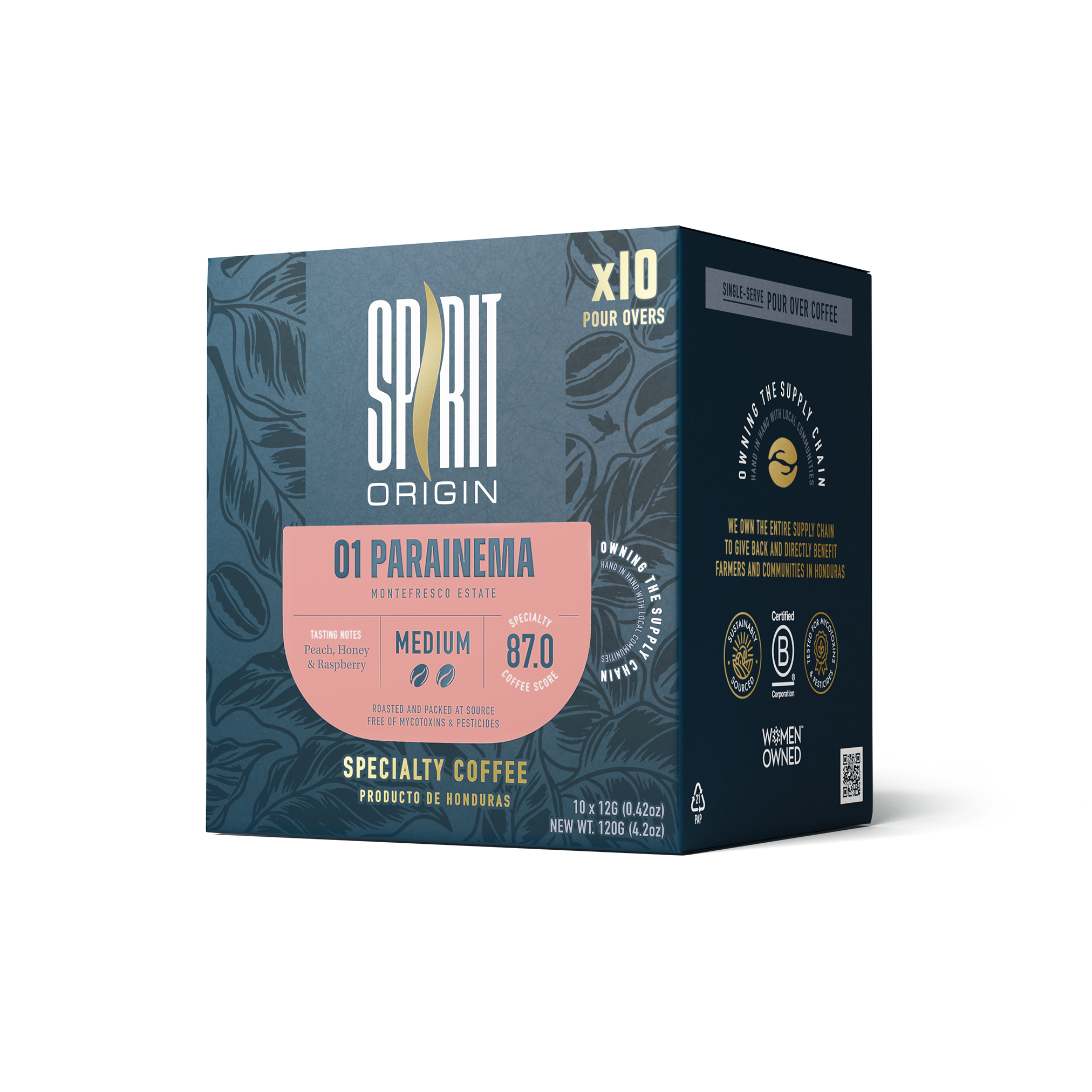 SPIRIT ORIGIN is a different blend of coffee. Our beans come from microlots in Honduras and we are laser-focused on selecting only the top 1% of the beans adhering to environmentally-friendly, organic processes. All our coffees consistently score above 87 points, as ranked by the SCA (Specialty Coffee Association).