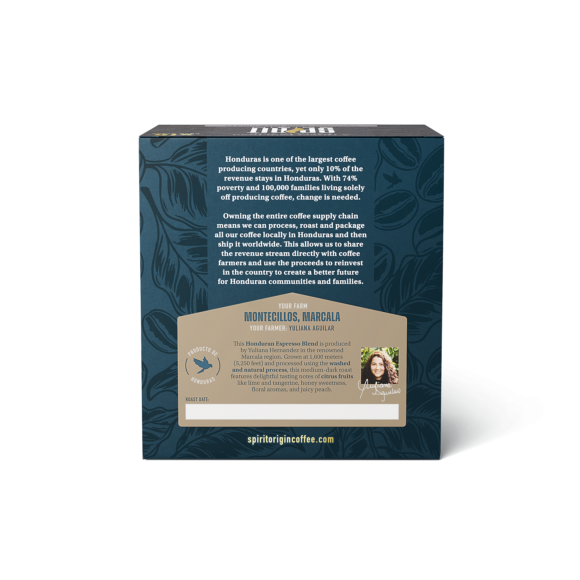 SPIRIT ORIGIN is a different blend of coffee. Our beans come from microlots in Honduras and we are laser-focused on selecting only the top 1% of the beans adhering to environmentally-friendly, organic processes. All our coffees consistently score above 87 points, as ranked by the SCA (Specialty Coffee Association).